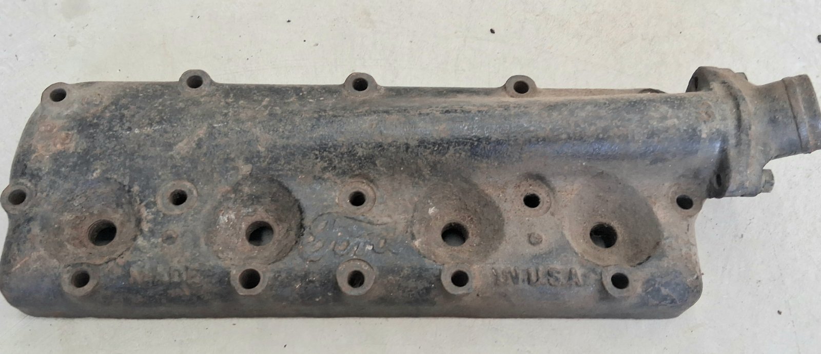 Early low style high compression cylinder head. Ford script. Made In USA. Threads look good. No obvious cracks. Price is $200 plus domestic shipping. Mark Chaffin (951)805-0928