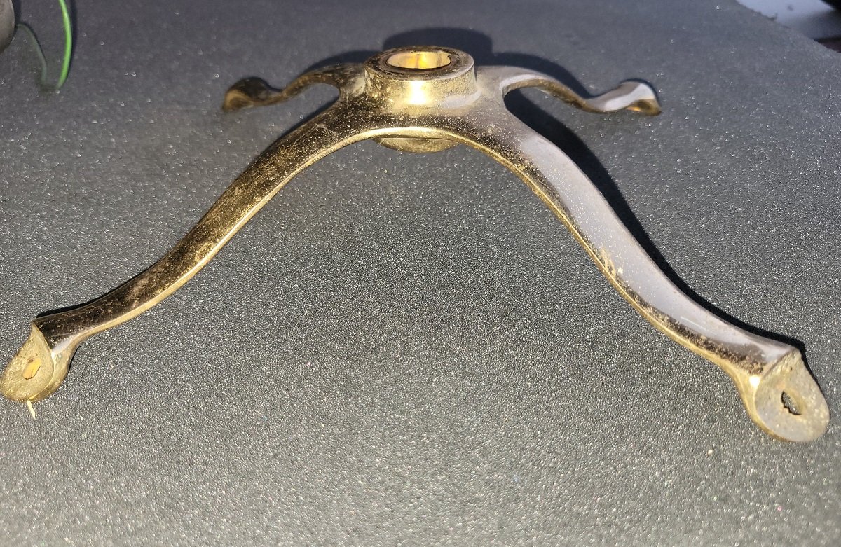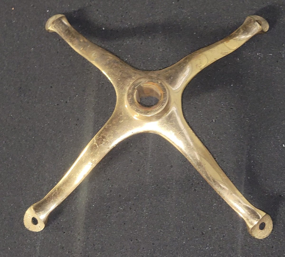 FS: Another reproduction brass steering wheel spider, fits a wheel with approx 12 3/8" ID. One or two of the arms are slightly bent. It's brass, though; a magnet does not stick to it. Asking $85 not including shipping.