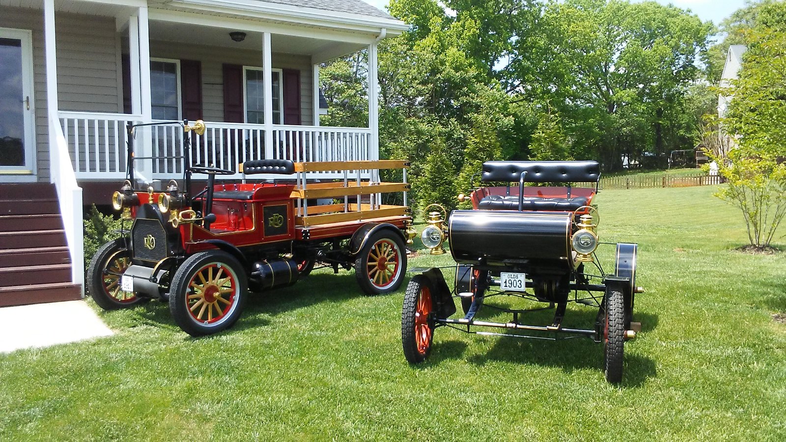 Neighbor kids on my 1897 Olds Trap. I always have kids on the cars, it's the best way to spark that lifetime interest. Then my granddaughter driving me around in the 1910 REO truck.