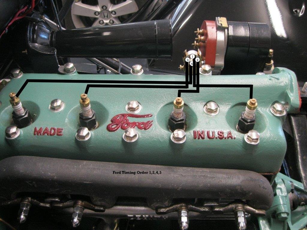 Model T Ford Items of information Engine Fire Order 1,2,4,3 1926 Model T Ford engine 22.5 HP 1926 Model T Ford RPM 1800 Timing the engine – set the #1 cylinder to TDC Bosch Magneto DU4 Items of information Stop the engine by adding a switch to ground the magneto. From driver seat Camshaft Magneto se...