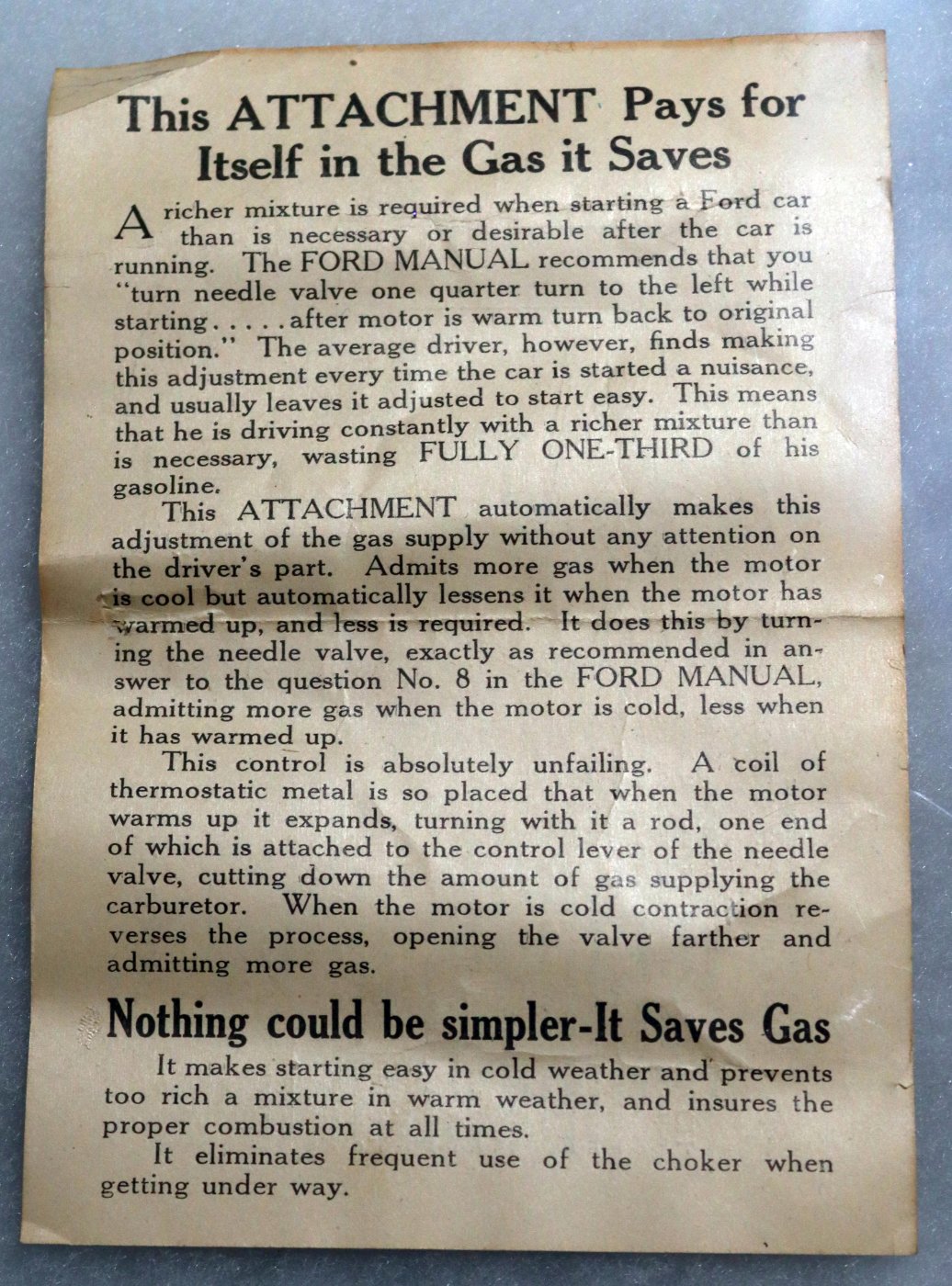 This is a mint condition period accessory that replaces the standard carburetor needle. It thermostatically adjusts the carburetor mixture as you drive. Comes with the original instruction sheet pictured. Asking $75 plus postage.