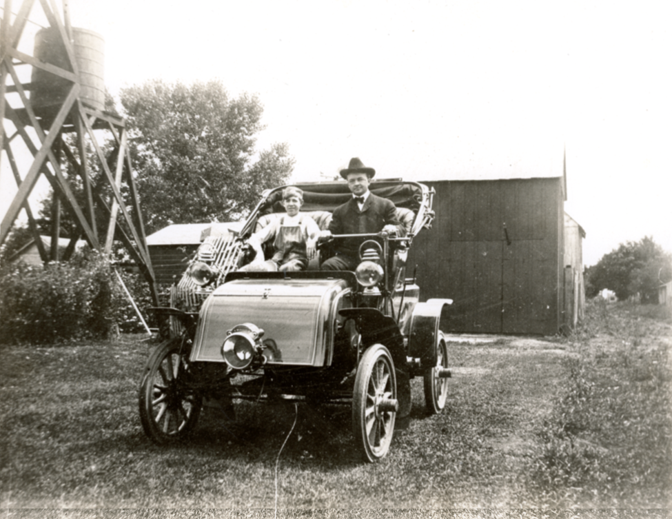 I am trying to identify the car in this photo. It was taken in 1899 in Shelby, NE being driven by the town doctor (the boy in the photo was my grandfather at age 9). I've looked all over and cannot come up with what this car was. Help!