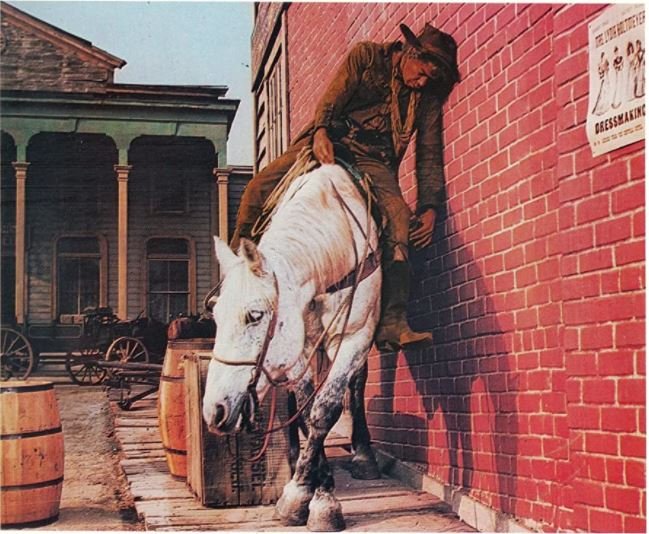 I remember the movie "Catbaloo" staring Lee Marvin , it was funny. Made in 1965So who is the dude on the Palomino?