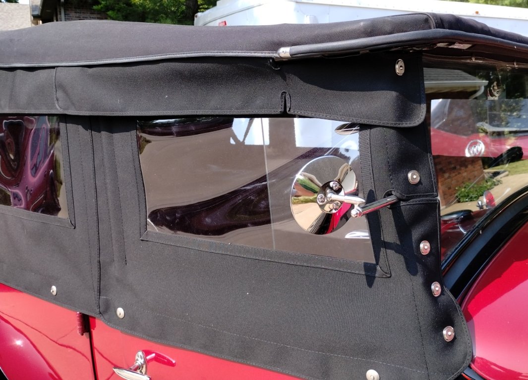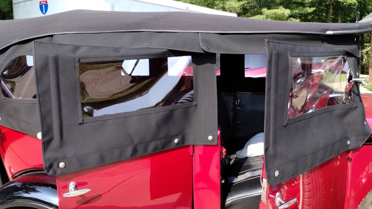 Since some people ask about tops and upholstery for Model T, I just want to show the great work done by Classique Upholstery. Finished my side curtains on our 1930 Model A Phaeton. I got the remaining fasteners installed and the last fitting done. Looks tight and sleek. I had standard patterns made and adjusted them a lot to get the fit I was after. Then sent them off to have Classtique Upholstery do the work, so here is the result. I had to match the top that was done by Cartouche 20 years ago. Here is before after pictures.