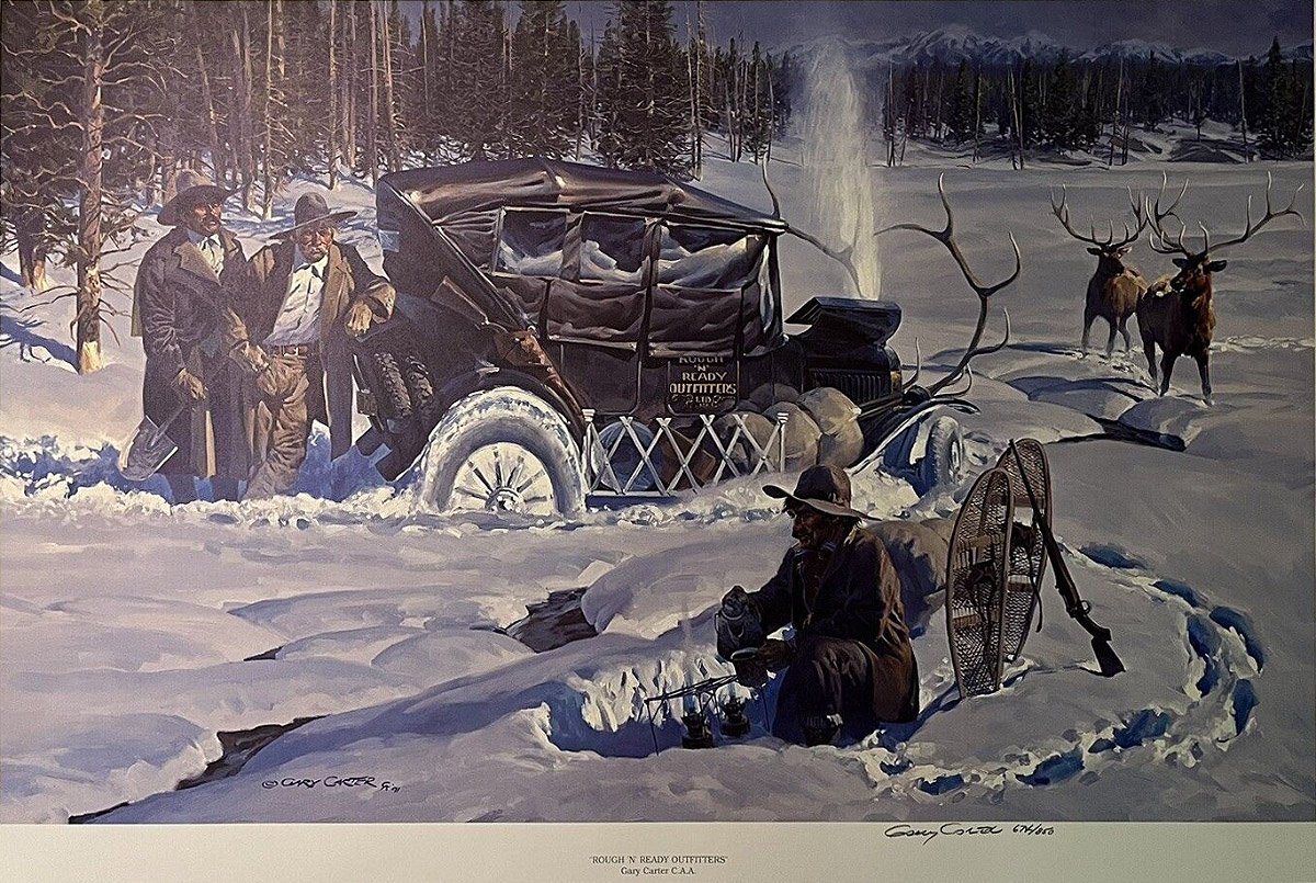 A more recent Montana artist is Gary Carter. He painted cars, trains, wagons and stagecoaches in interesting situations much as Russell and Remington.