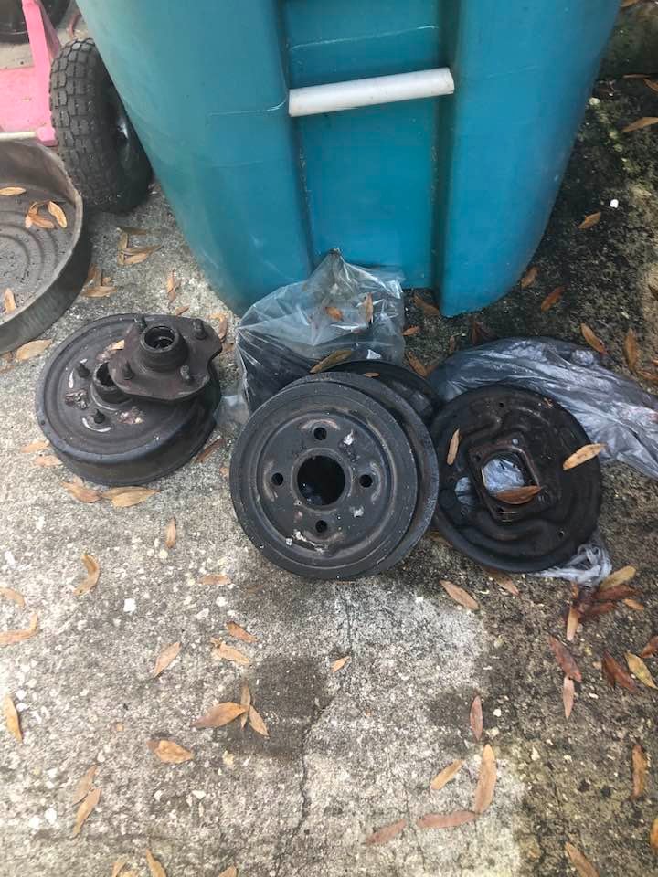 Free to a good home, Front brake parts from a 1966 Ford Mustang. 4 lug in line 6 cylinder engine. Two bearing hubs, Shoes backing plates, and wheel cylinders. Iv upgraded the front brakes on my car and no longer need these. If your working on a vintage Mustang these can help. They will not work on a V8 5 lug nut car. [image][/image]