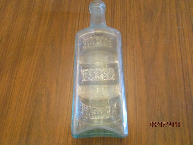 Well, the suppliers of Happy Sally improved their containers over the years to keep up with popular trends. Cliff Toshover, a world renowned bottle collector, displays 4 from his collection here. The bottle at far left was blown in a hinged mold leaving a vertical seam. With the long neck it may be the type in the recent photo.