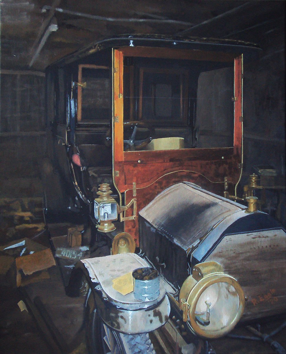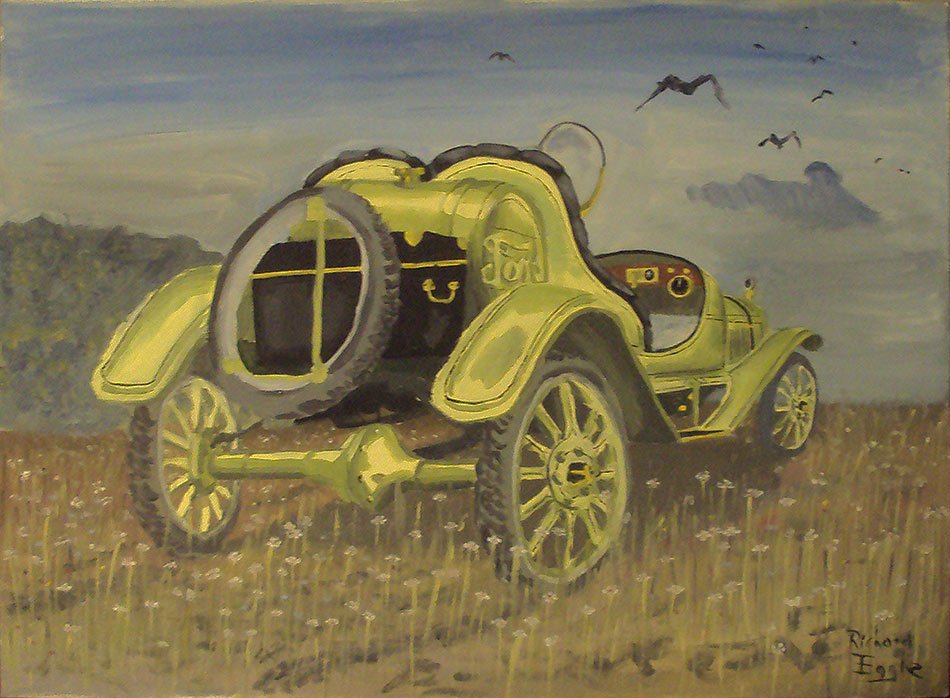 I painted this in 1981 from a photo of Col. Augustus Post. He is sitting in a 1906 White Steamer of the Glidden tour.