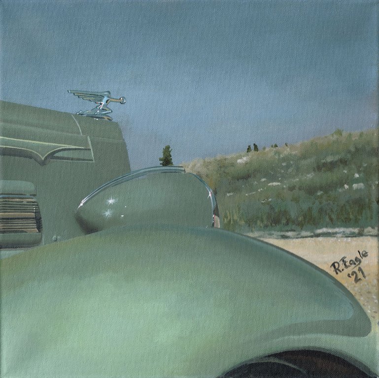 It's been a good Winter for painting. Joy remembered a car with a ship on the dashboard. That allowed me to by a junker Plymouth for a time.