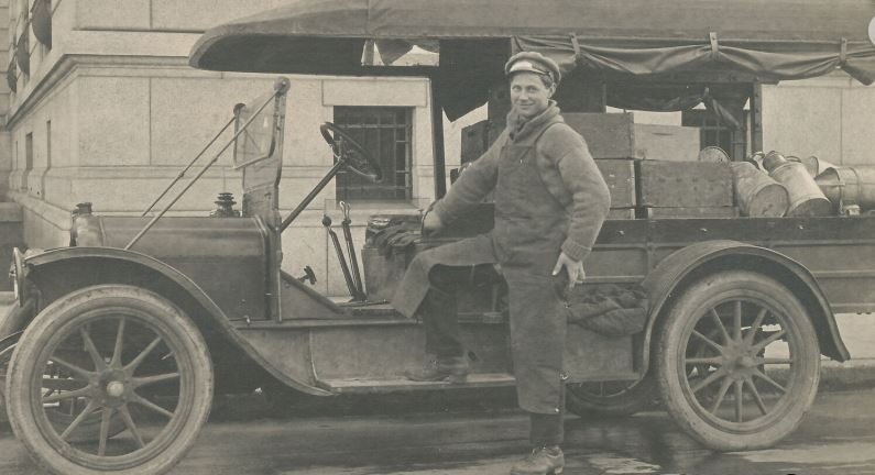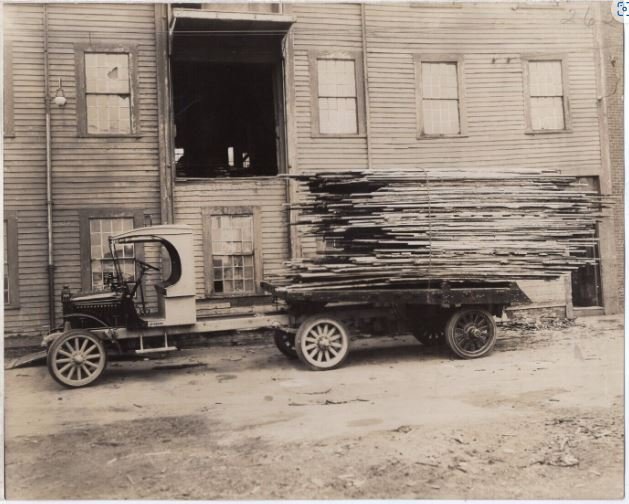 The truck looks to be a Packard and probably 1919 or later from the date above.