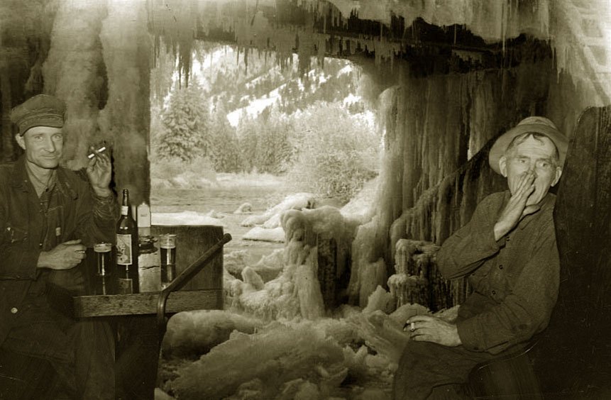 of the Chugwater, above Silver Plume. Burly men in red flannel and ear-flapped