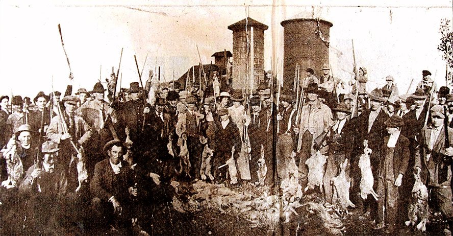 Dick only went hunting once. Here we see the crowd gathered to view the rabbit hunt result. 1785 rabbits!