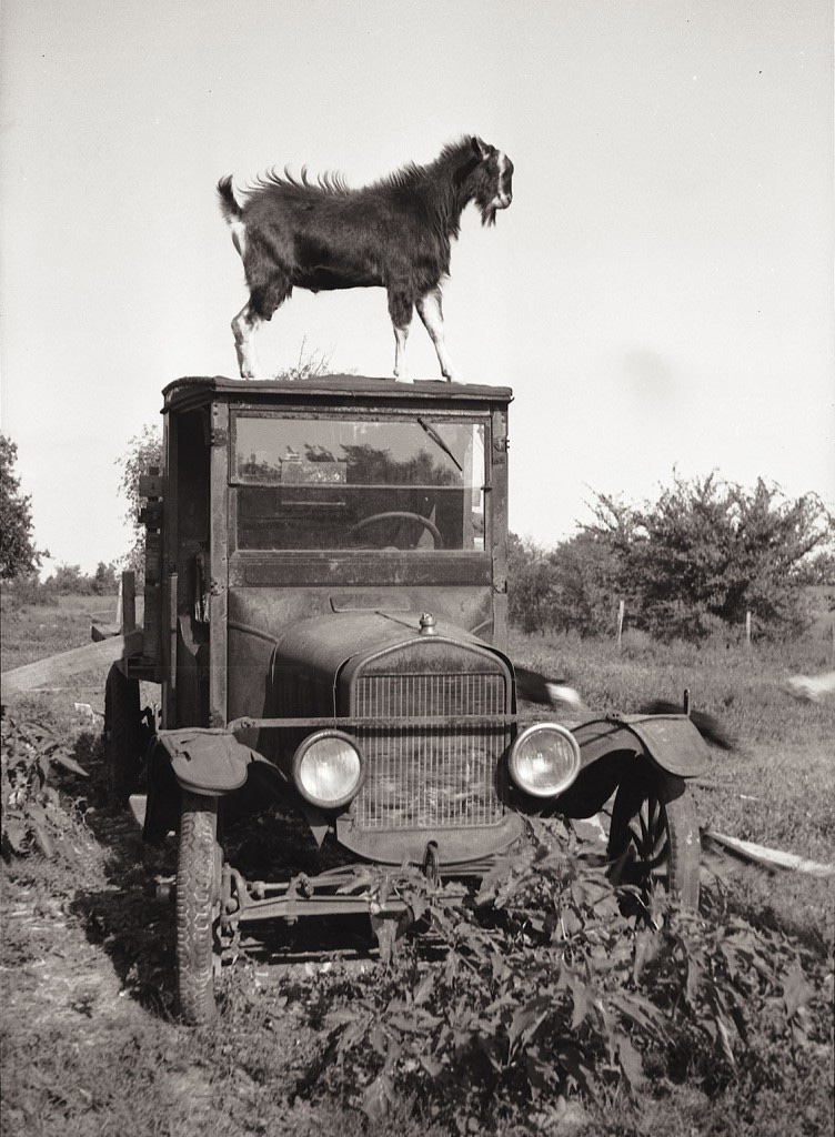 That's a photo showing one of KD's less than stellar "works in progress", the self-dumping dump truck. Everything would have been fine if Hogan's goat would have stayed perched on the front bumper. But, NOOOO, he had to jump off, chasing a tin can because he was irresistibly "canivorous".