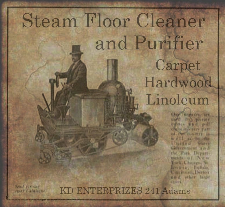 I guess I need the old Floor Machine KD designed the following September. Our modern Stanley Steemer hasn't got anything on that. While the invention was perfected in the Wilson street facility, it blew out the floor three times while adjustments were being made. Later with some reinforcing the Adams Ave location became it's home even with the scaffolding pirates next door. A rope was strung to guide customers through the green haze to the entrance. The initial model proved a bit large for some closets so a smaller version was experimented with but didn't prove defensible. KD became side-tracked on the spiltch digester about that time so it sat on the jesting block for the duration.