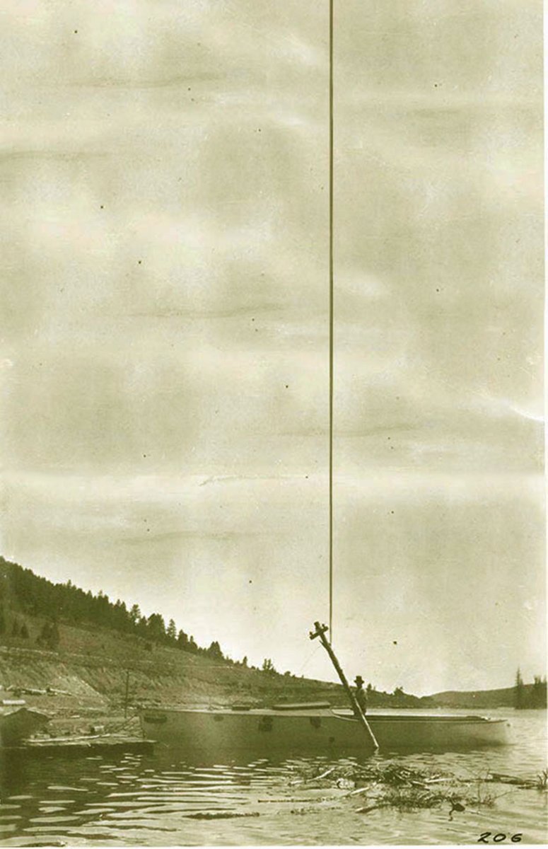 Rich, thank you for supplying that excellent photo of the flume. It’s remarkable in that it clearly shows KD’s raceabout negotiating Sasquatch Creek on one of his excursions to photograph the migratory Opisthocomos in their spawning plumage. Balloon tires on the raceabout improved flotation. Dick is not present in the photo, presumably Cuthbert took it.