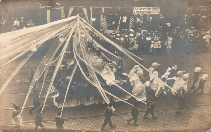 "What a crowd gathered at the depot for the Carbonators suit train today. Most of Chugwater and a good share of the bridge dwellers from Blattsville turned out. The Convolution Band slid in from Deblow and played "Roamin' In The Gloamin'" and 3 other popular pieces. Slim Chowder gave a speech on raising Quiddles without twine and Pauline danced in the Elk outfit. A buffet was set up on the loading platform after the bails of Tweed had been delivered. Nadeen Pliffraffle made 3 Rodentia Pies without labels. Society Deputy asked me for the recipe as the members had eaten most of them even before the benediction. Other than the Studebaker catching fire the welcome went off without incident."