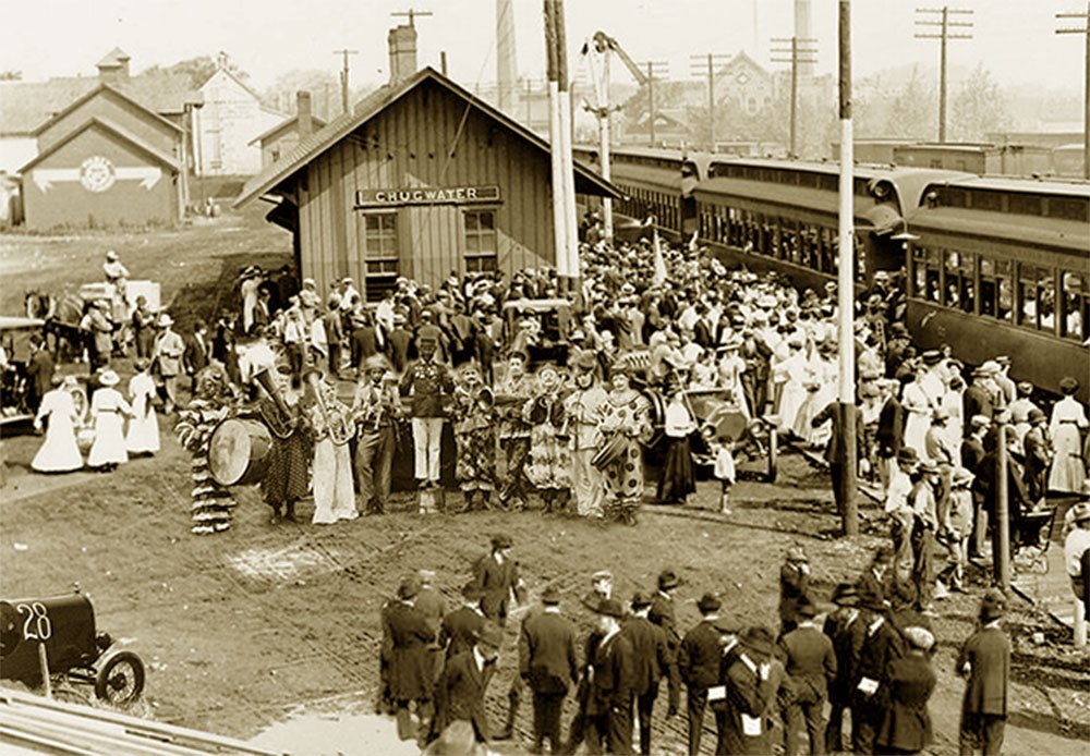 photo shows the special train from points east has arrived with the special excursion
