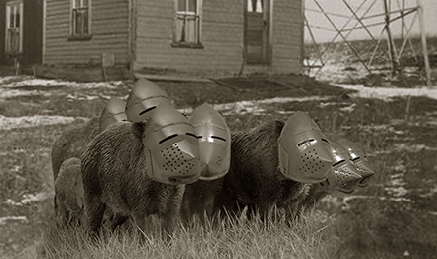 Looking closer at the lower left of the photo I believe I see the Farkuss brothers tilling some mulch. Fenway, just right of Jeb, took up mossraking to evade service in the Carp Legion.