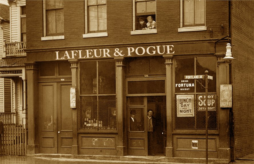 That was a rough neighborhood as evidenced by the metal gratings over the windows. A curious bit of trivia, originally the street was named "Porkland Av. " after the beanery, but city fathers changed it, objecting to the lack of refinement. During Prohibition, the "hot soup day and night" sign became a code suggestion for patrons opting to break Volsted Act regulations. Depending on one's connections, a serving might be a Thermos bottle of chicken noodle, tomato cream, or occasionally, bathtub gin. No one dared complain, and it made the soup kitchen especially profitable.