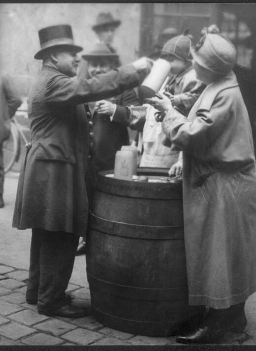 Yellow German mustard was popular in the Basin during WW I, but reports of mustard gas diminished enthusiasm for the condiment at the front as well as at home. Grey Poupon never gained any followers in the Tri-burgs. As Cuthbert was wont to say, "I don't want none o' that gray poop on my weenie !", he expressed the sentiment of nearly every one of the regulars at Ernie's Saloon.