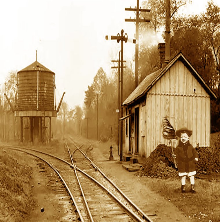 The picture of poor Philo standing by the tracks is his only way to contact his father a conductor on the train. He is holding up a paper Christmas tree he made in school to wish his father a merry Christmas because he very seldom got to spend time with him. As we all know Philo was born on the wrong side of the tracks.
