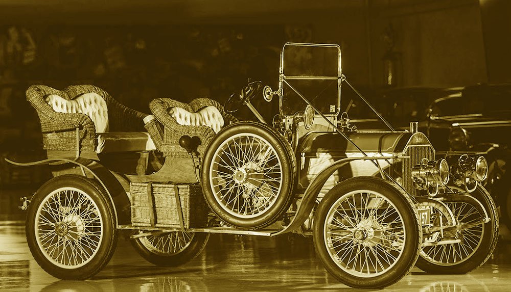 The tough, lightweight woven twine bodies shared certain advantages with the woven wickerwork tonneaus, and offered some peculiar advantages of thier own. They were indeed comfortable, and perfectly quiet. Even slamming a door generated only a muted whisper. They never dented or rusted. The bodies were fully washable and line-dryable, and could be starched if the owner wished. A starched body could be ironed and steamed to provide unique and artistic curves, planes, and creases to give a car a distinctly formal appearance, or simply washed and dried, which gave a somewhat more casual and sporty look. The bodies gained a bad reputation among cigar afficiandos and their insurors after errant cigar ashes caused some spectacular rolling conflagrations. The boll weevil disaster in the southern cotton districts put an end to the woven twine era and opened the door for Big Sheet Metal's near-total takeover of the auto body market.