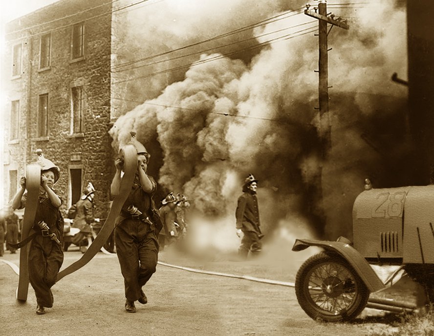 Gathering crowds were tittilated by the sight of the comely sisters in their "scanties", but fire chief Biff Burlap always made sure there were blankets on hand to ensure their modesty and keep the pair from chilling breezes.