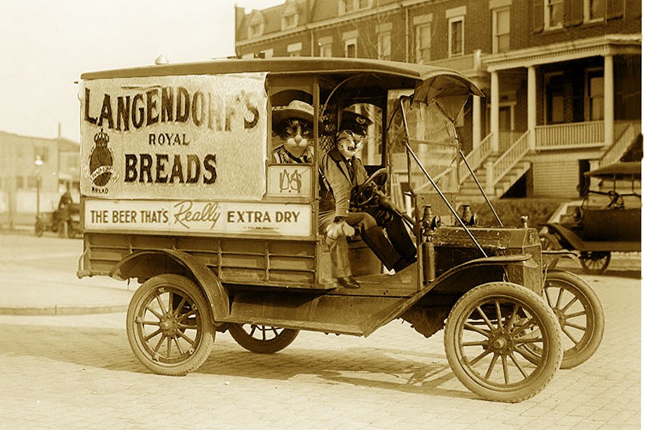 Perhaps the long neck "vapor lock" syndrome was related to the high alcohol content of the "really dry beer". Naturally, any cat would prephurr the very dryest beer available. Langendorf's Royal Lager was of such exquisite dryness that dry cleaning establishments purchased unlabeled barrels of it during the Prohibition repression, and certain dry cleaning shops did a lot of business out the back door. It's said that Mickey Mouse's trademark phrase, "Is everybody neat?" got its start among dry cleaners' patrons during this era.