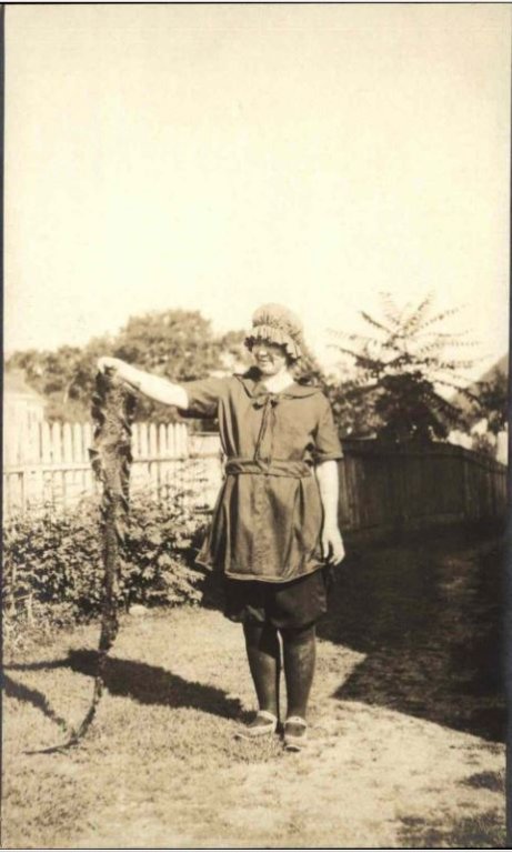 Not enough has been said about the Tweetslithers. As the above photograph attests, Reggie was an amiable fellow with a sunny disposition and an engaging smile. Doubtless it was this gentle disposition that accounts for his success with reptilians. That disposition and predilection was passed on to the Tweetslither children, witness this photograph of Reggie's eldest daughter Aspidistra and her favorite alligator Heimlich, who was her constant companion and loyal pet.