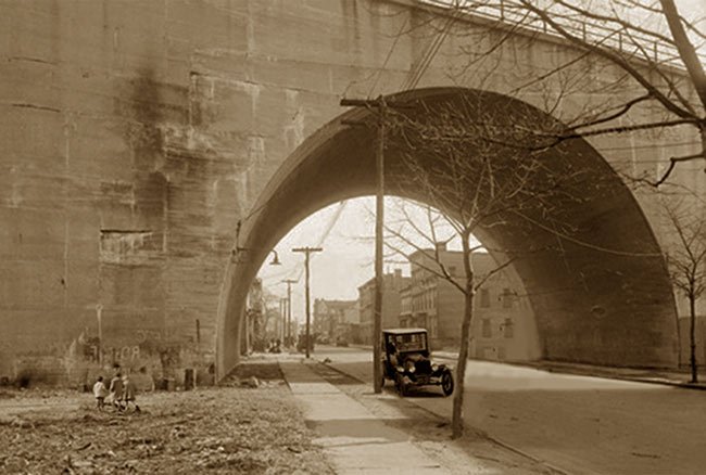 the noontime lunch trolley to Ernie's was forced to drop its spreader bars to clear the line.