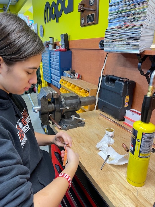 My daughter Soldering her first pipe.