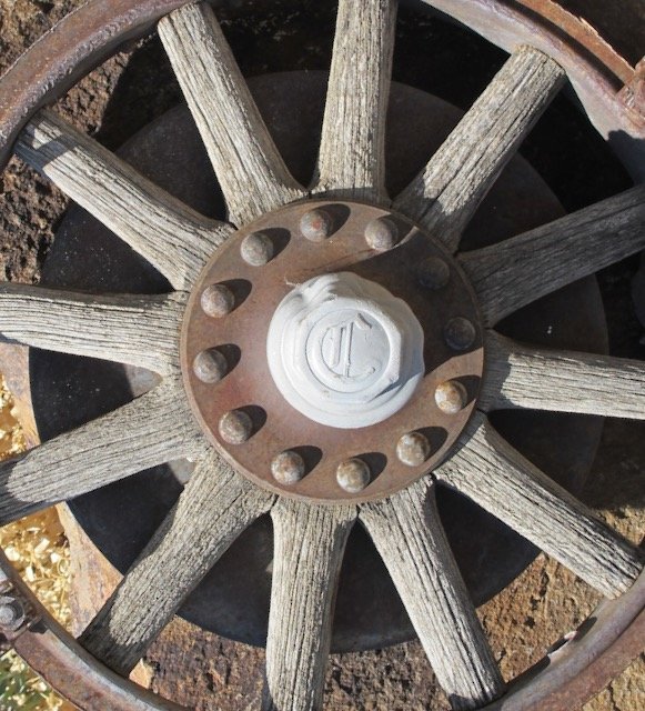 The wheel looks to be a match. The device on the hubcap is an Old English letter "C". (No wonder most people couldn't read back then)