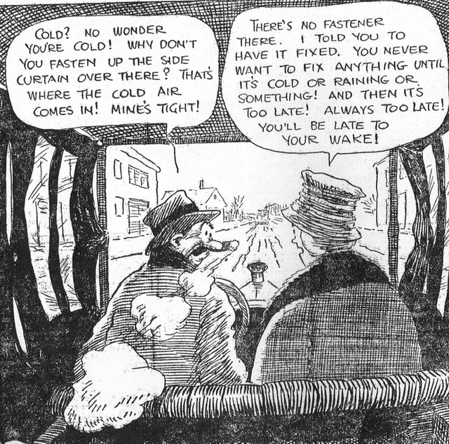 I stole this image from the Facebook Model T group. "Gasoline Alley", no date. It reminded me that the comics section of old newspapers from the mid-teens to the early 1930s provide a wealth of fun car gags, and "real life" insights into motoring in the early days. From its inception, "Gasoline Alley" ran a continuous saga that would warm the hearts of today's speedster enthusiasts. If you ever have an opportunity to peruse the morgue files of your local papers, it can be a lot of fun. The old strips often show what motoring was really like "back in the day".