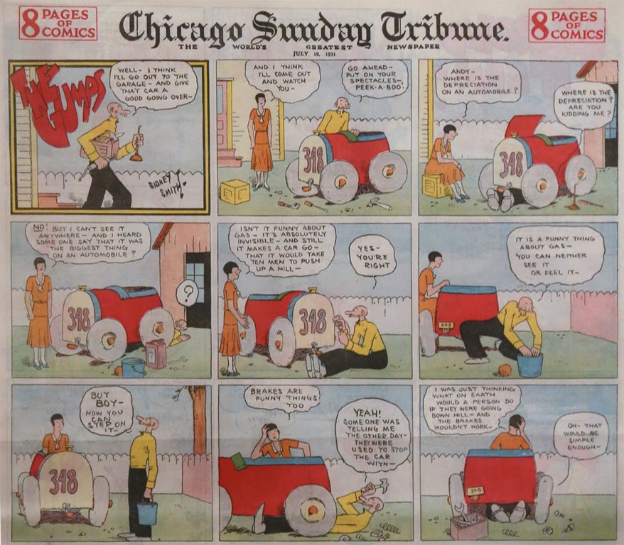 I confess I had not followed Gasoline Alley. Thanks for bringing up to date. I did enjoy some clips of Andy Gump and his vehicle. The Gumps ran from 1917 until 1959.