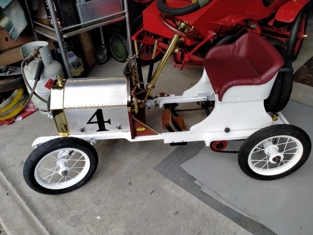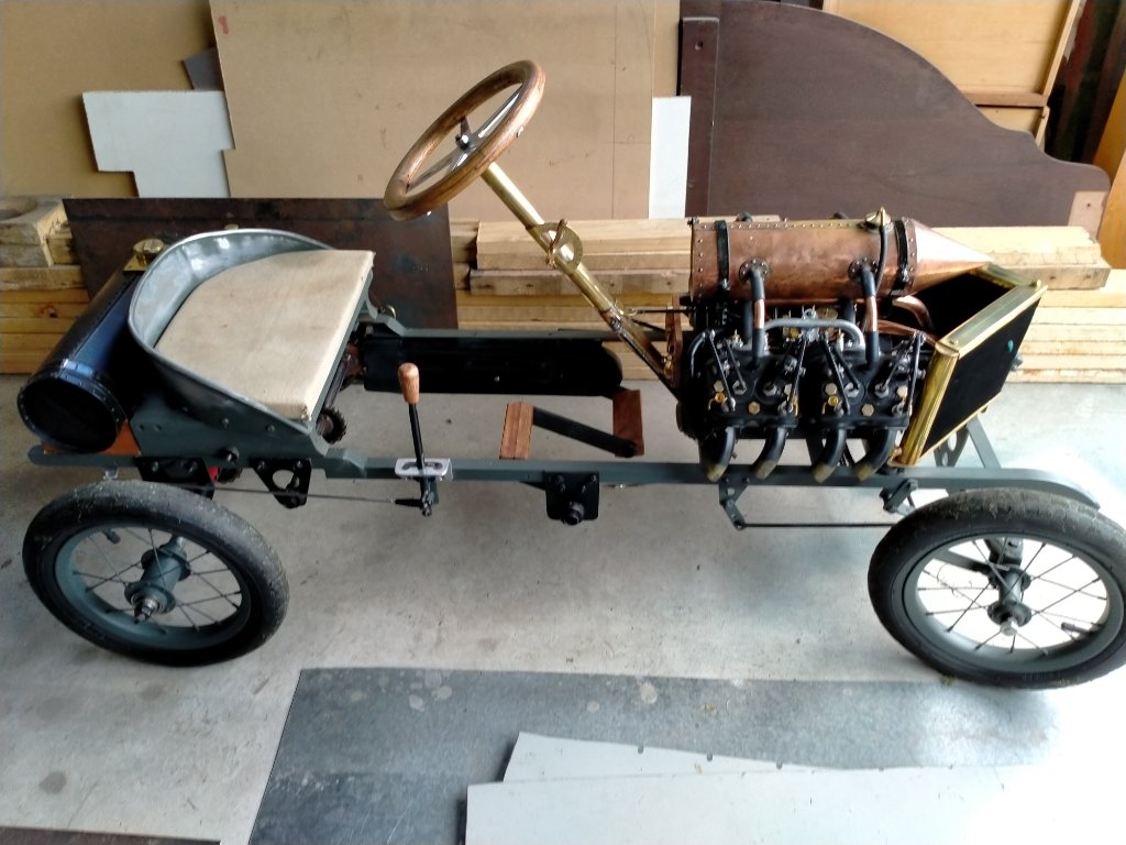 The racing cars (Darraq and I forget the Green car) have moving engines and valve trains powered off the gearbox when the cars are pedalled.