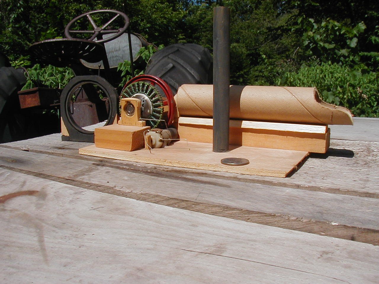 If I may, 20 years ago I slammed junk VCR parts, a spare Ertl flywheel and scraps together. Gotta love big gas engines.