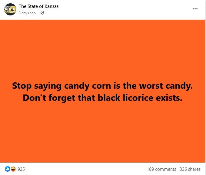 By the way, people, I happen to like candy corn! Every year, my wife and I look forward to it coming back into the stores. As soon as it shows up, we buy a bunch of bags of it, and it is nearly always all gone (we both like it!) (seriously!) before Halloween! I would buy more again, but usually a week before Halloween, they are sold out. So others must also like it.