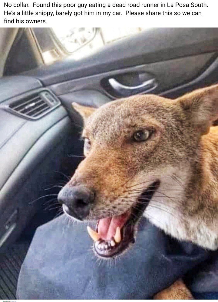 He's a dog. Might be eating a roadrunner but doesn't look like a Coyote. If he speaks, I don't think he will sound like one either.