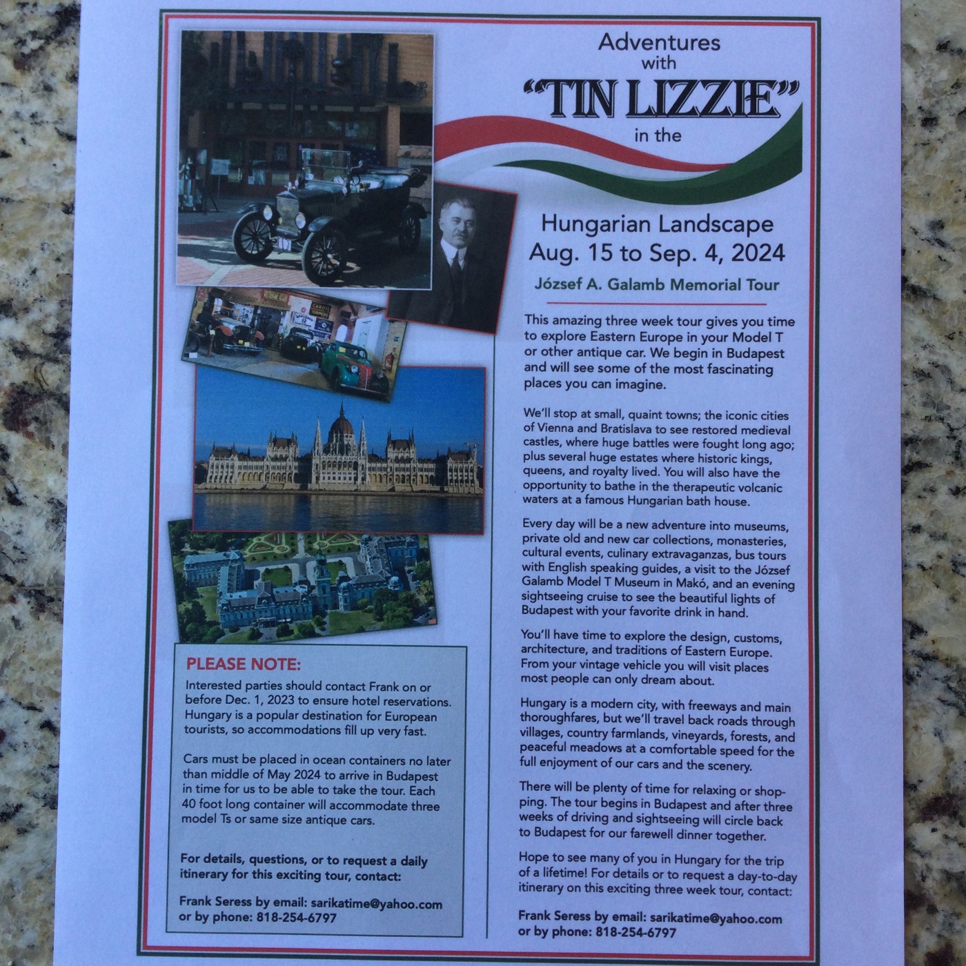 This is going to be a tour of a lifetime. Check out the advertisement and call to see a daily itinerary.