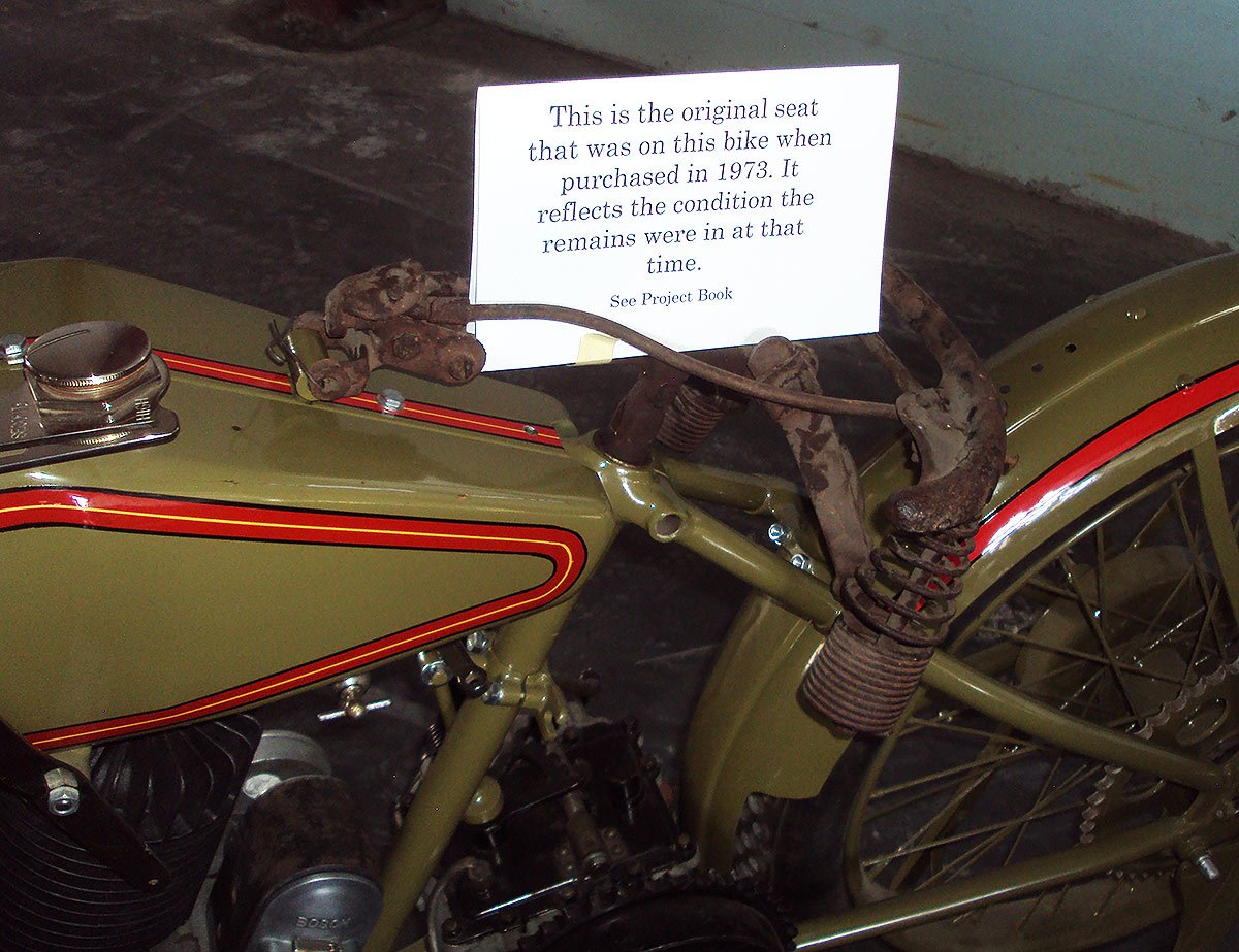 Many enjoyed seeing the bike and photos of fabrication over the years. I installed the unrestored seat frame to indicate how the bike looked in 1973 when I acquired it. Like the T at our cars shows it was the only one like it and it hit a special cord for some people. It also encouraged me to make a few weeks progress on the bike which too often is overlooked.