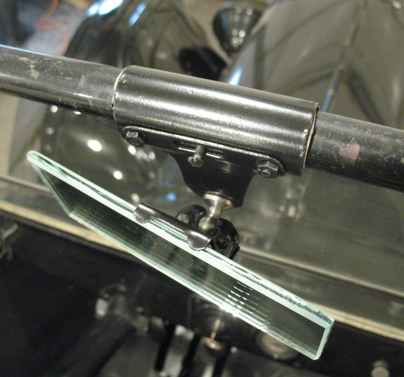 On the runabout I use the clamp-on mirror sold by the parts dealers because I got it cheap in a pile of auction stuff. I pad the clamp with a bit of old inner tube to save the paint. Does it jiggle? Sure. This is a Model T. Does it jiggle so much that I can't see what's behind me? Nope.