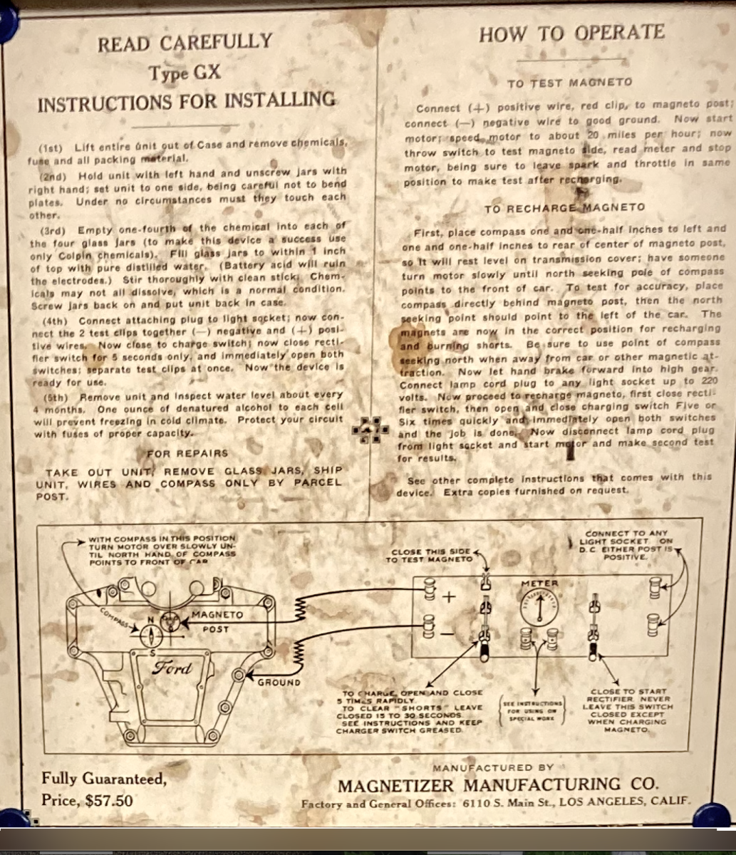 The jars might have salt or such added to water to reduce line voltage, like a bank of light bulbs to recharge magnetos. As noted on the label, only works with DC line voltage. There is an illustration of using salt water on page 237 and description on page 240 in "The Model T Ford Owner" chapter on recharging the magnets.