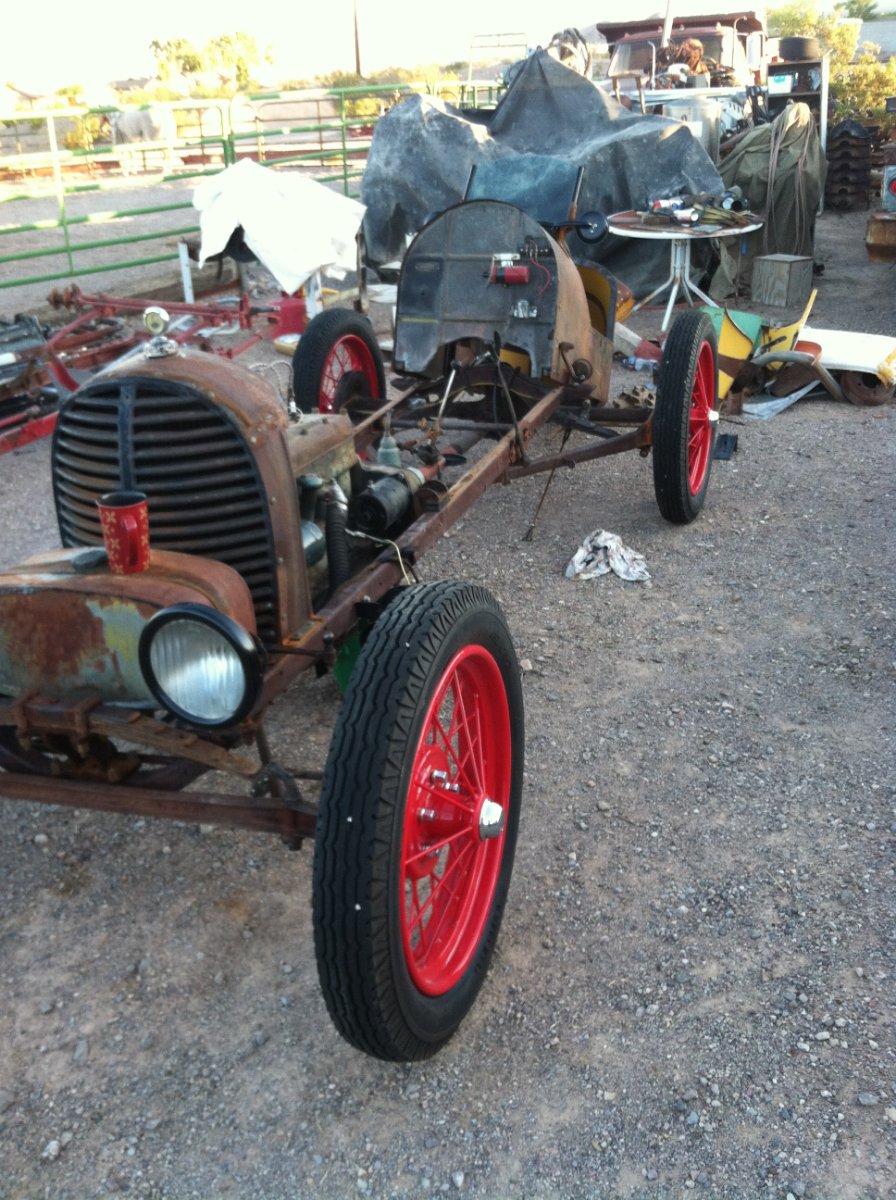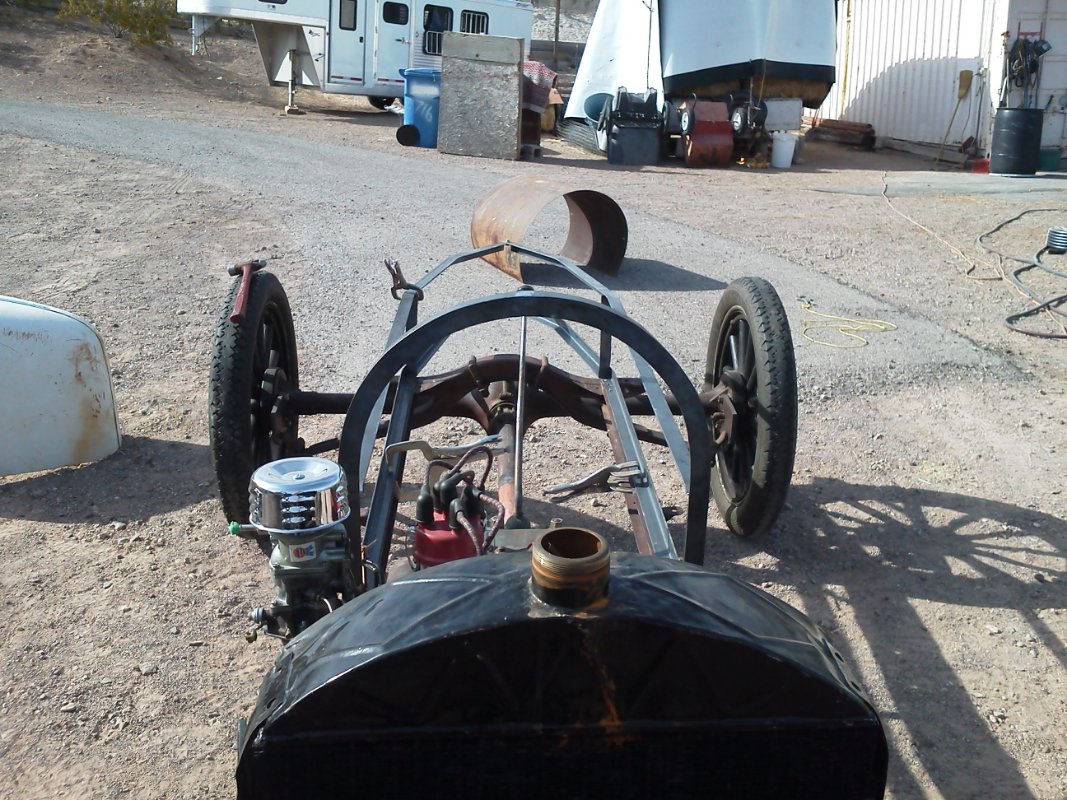 The rear end is a hybrid , Large drum model t with the model A tube grafted where they were the same size and I used a model A drive shaft and cut it to fit the model t pinion and it has opposing timken bearings for the pinion.