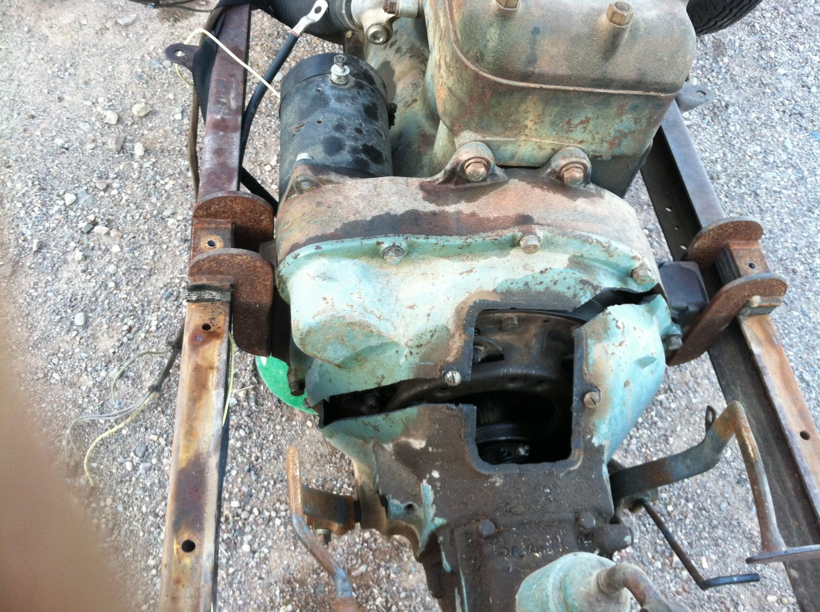 OK , I have to have an engine! Where on earth can I find a model t engine? I start looking on craigs list and finally find this after a couple of months. I better get it because I haven't seen anything else closer to a model t engine. Wanted $700 so I offered $500 and he took it, so I guess this is close enough for now.