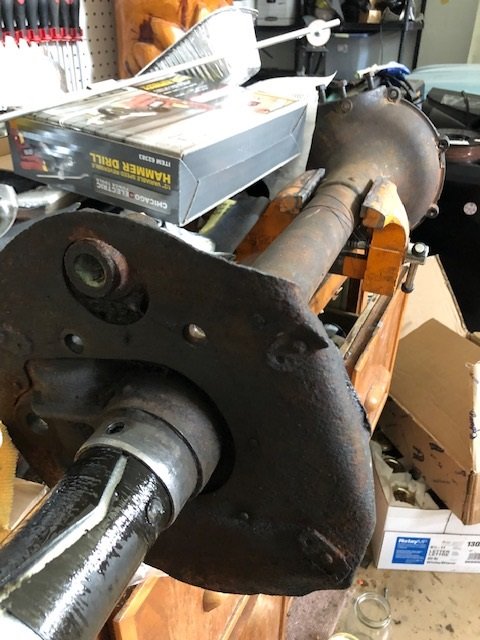 The drive shaft bushing is in and I am about to put the differential all back together. New sleeves are on the inner aspect, unlike what the picture shows the Hyatt bearings were all thoroughly cleaned and the inner one was installed a bit later. I discovered that at this time I may not have sufficient spool bolts or studs to complete the job immediately.