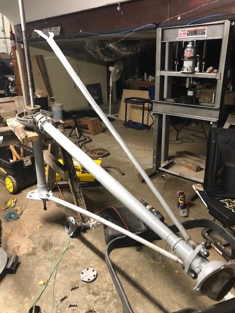 Update: Spindles are on. I ended up using a 1/2 inch drill bit and a drill press because my cheap adjustable reamer broke a tooth. The 1/2 inch drill bit seemed to work fine on both the spindles and the Steven's tool insert. Little to no movement on the spindle bolt. The mostly small rusty chassis replacement parts have all been repaired, extraneous stuff removed, cracks welded and at the sand blast/prime place. I discovered one front fender/front light mount is bent at the base. I think that I need to mount it to a stud and try to bend it back but it is already at the blasters so I will have to try to fix it afterwards.