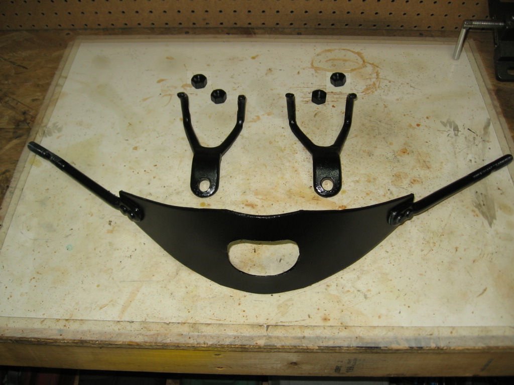 Here's the one on Betsy, my 1924 cut-off touring. I installed it because one of my pan ears had a weld repair and I wanted extra support in case the weld ever failed. Note how the nuts firmly clamp the hooks onto the threaded rods to prevent relative movement that can cause the hooks to rub a groove into the rods over time.