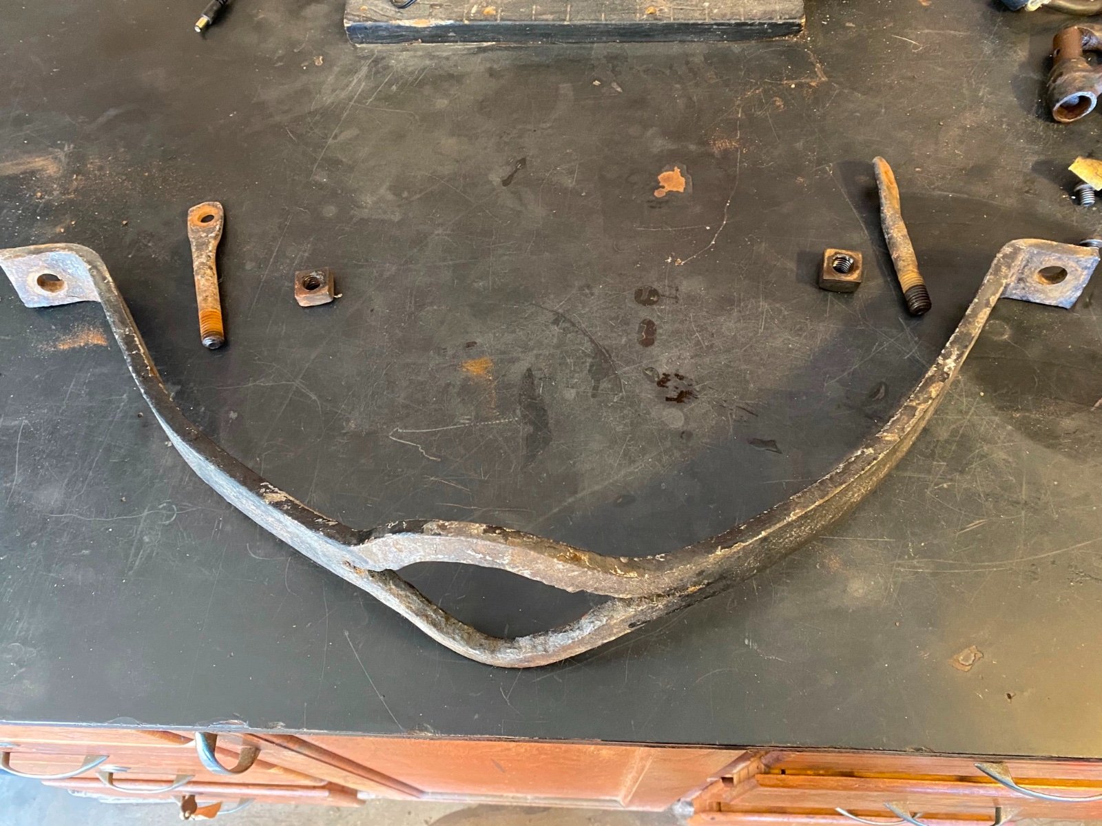 My parts chassis came with a homemade belly sling. The chassis was last used as a car in 1961 and the by the looks of it, the belly band was in place for a very long time before then.