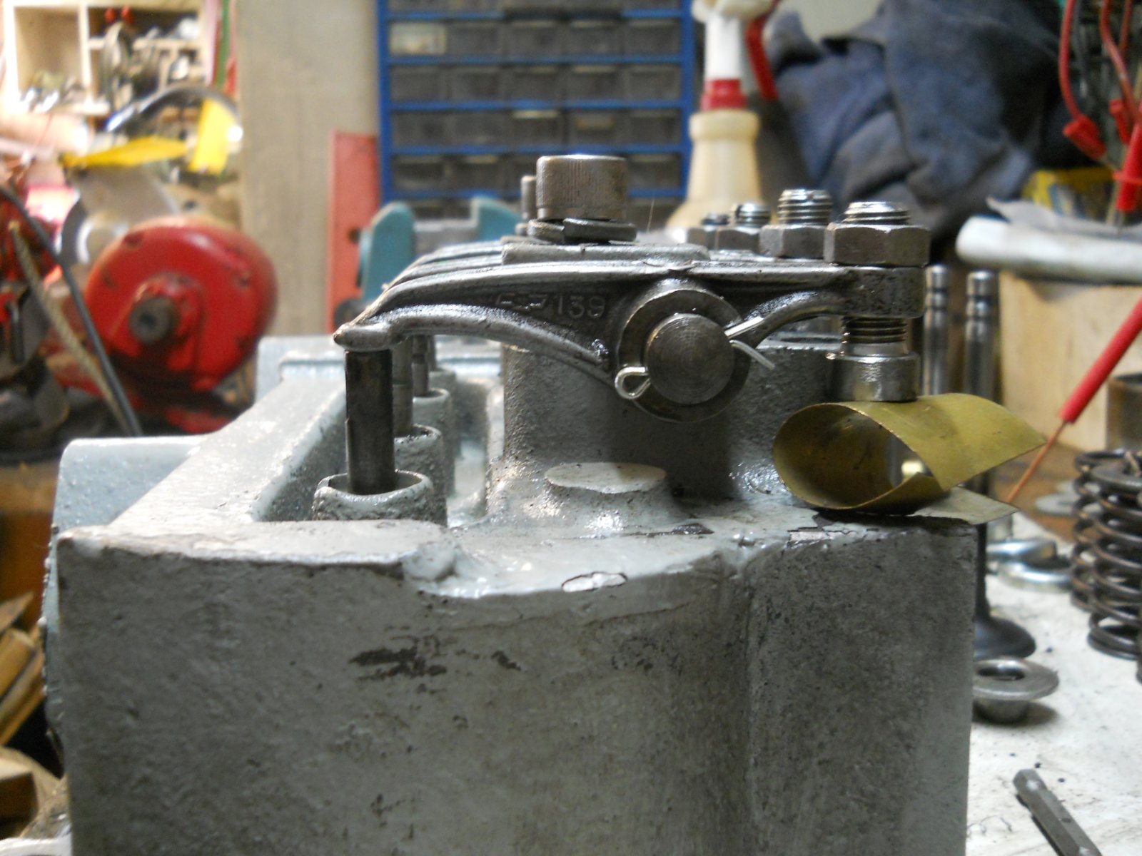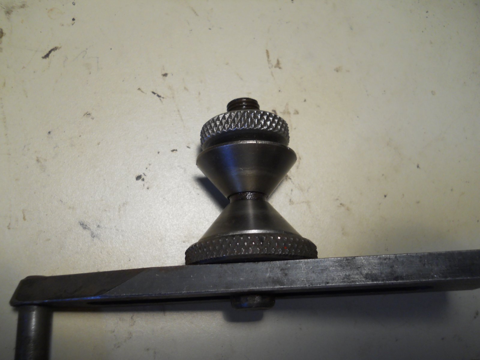 Few more photos. The Black & Decker holder for doing rocker arm pads and how I did the bosses. I am still working on freeing the adjustable cone on the rocker arm holder. I don't think it's threaded, if it was, there would be a flat knurled area to turn it. Tried a little heat and paraffin but she no move. The knurled piece at the bottom is not attached to the cones, it clamps the center shaft to the bracket, the top one is not attached ether, it locks the adjustable cone in place after the rocker is installed.