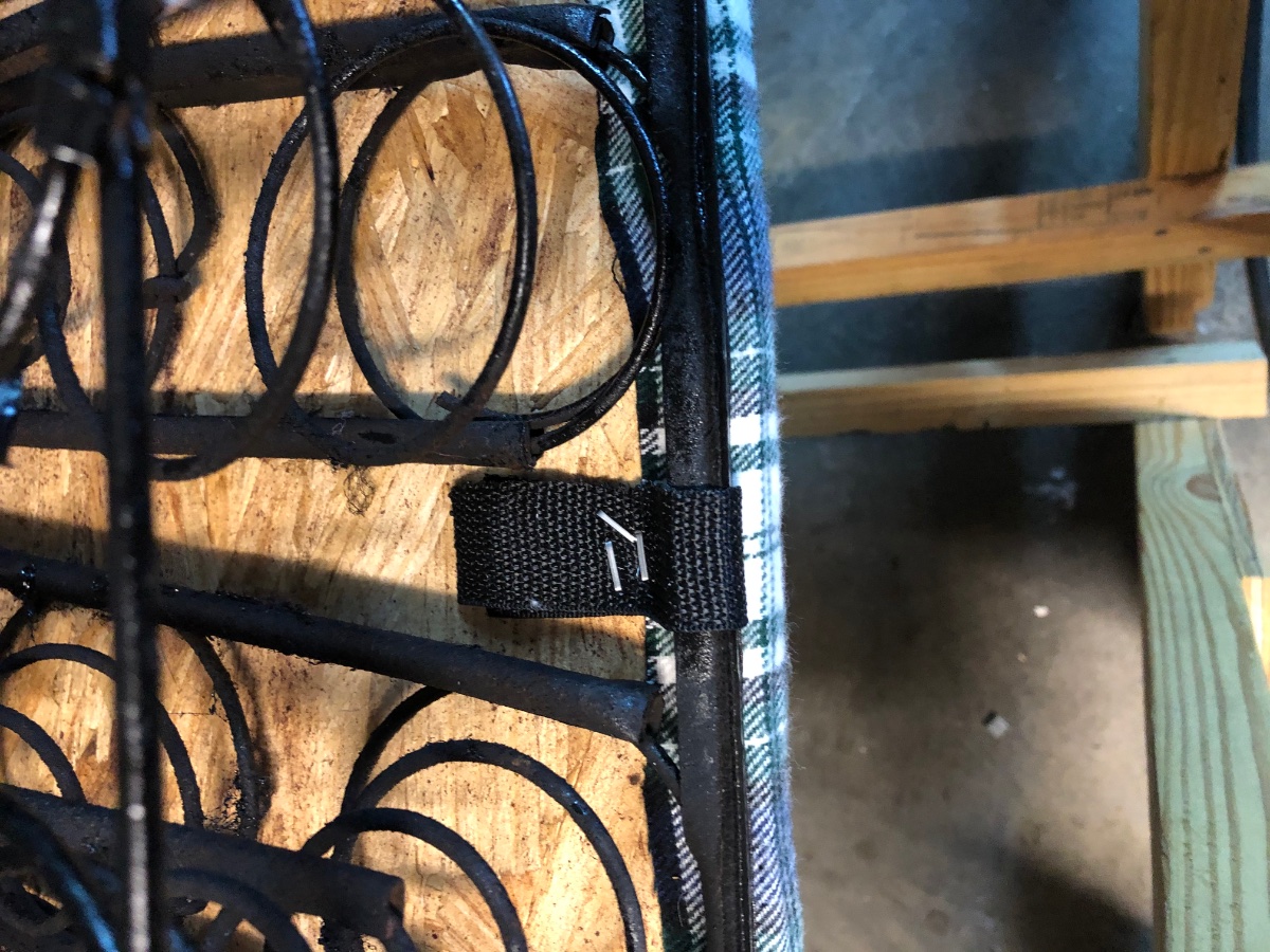 That definitely works, but originally there were no hog rings or plywood involved. There is a “V” channel at the base of the cushions and back springs that gets pried open. There should be cording welt sewn into the seat covers on the sides that just gets pinched in those channels to fasten the covers to the springs. Real simple and easy to install.